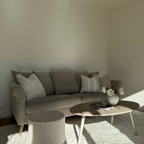 Säljer en superfin 3-sits soffa i beige från Maxime-serien. En tidlös och stilren soffa som passar i de flesta hem – perfekt för dig som gillar en lugn, modern inredning.
