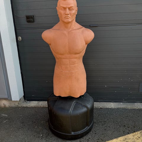 Century Boxdocka/sparkdocka med torso och huvud på stabil fot. Fylls i botten och går att justera i höjd med skruv på sidan.