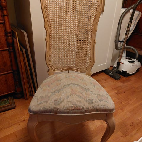 Stol i rotting med träkant och kromad medarställning. Skön bred sits och rygg med flätad rotting som ger bra stöd.