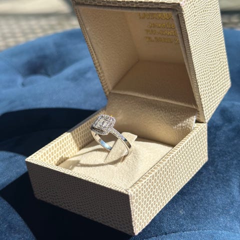 Ringen är sparsamt använd och i mycket fint skick. Perfekt som förlovningsring eller en lyxig present till någon speciell.