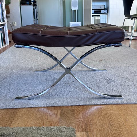 Säljer 2 st. I bra befintlig skik sittpallar i leder och plåtfot av märket Agvadgrup.