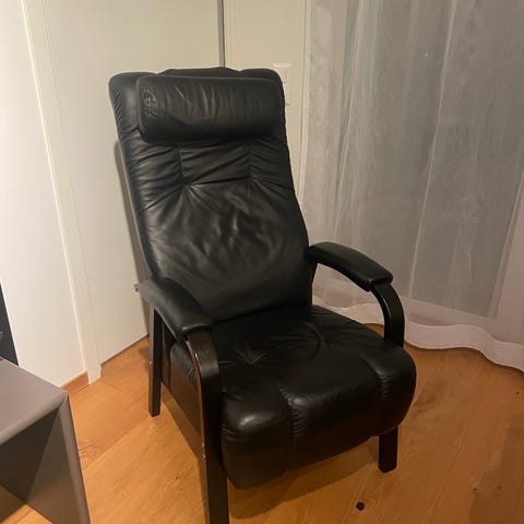 Säljes: fotölj + fotpall, lampa på köpet