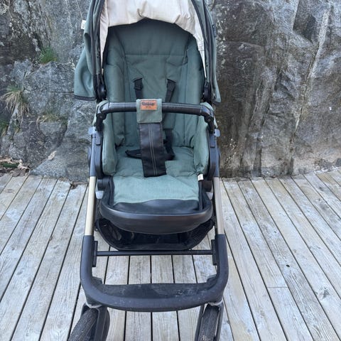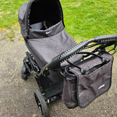 Sittdelen kan justeras från sittläge till fullt liggläge, vilket gör vagnen flexibel och bekväm för barnet. Vi har använt den som extravagn på förskolan, där den fungerat utmärkt.