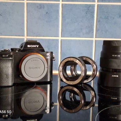 Sparsamt använd. Bra skick. Bak och främre lock + motljusskydd ingår.