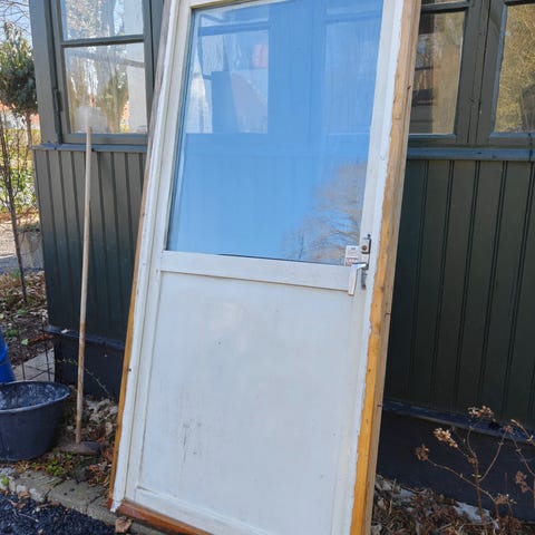 altandörr med stort glasparti isolerglas . Har handtag på insidan mått 9X21