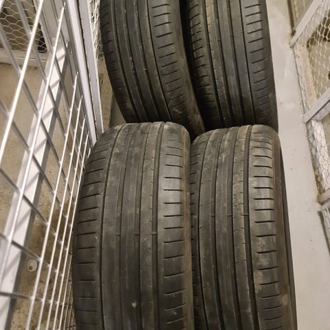 2 st ContiSportContact5, 245/35 R 18 Y XL, mönsterdjup ena däcket 5,1 - 5,8 mm, det andra 4,8 - 5,3 mm, plus 2 st ContiSportContact3, 225/40 ZR 18, mönsterdjup ena däcket 4,4 - 6,0 mm, det andra 4,5 -5,0 mm