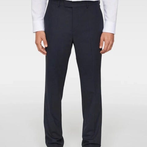 Mörk- och ljusgråa ullbyxor från J. Lindeberg i stl 50, med smal passform. Har knäppning i linningen, dragkedja och fickor fram.