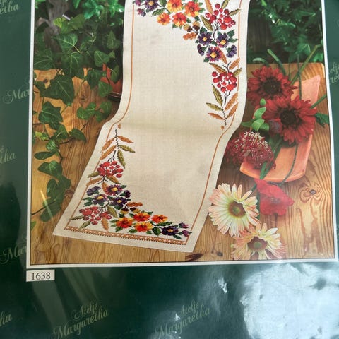 Väldigt fint bordduk/löpare med underbara handbroderade bårdmönster