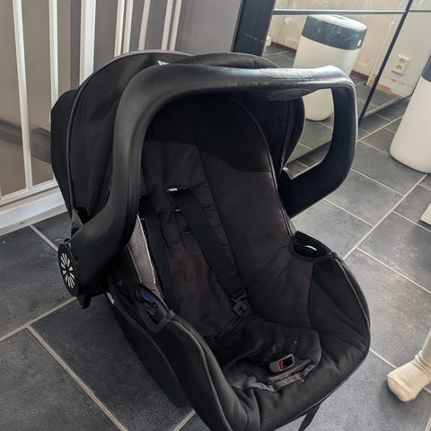 Babyskydd från Britax Römer för 0–13 kg, i svart med bärhandtag och sufflett. Har bas, internsele och justerbart handtag.