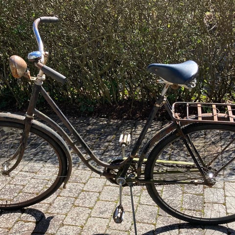 Cykeln har stått ett tag och säljs i befintligt skick – viss rost finns och den behöver service.
