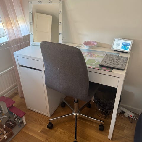Säljer 3 st gråa bordskärmar till skrivbord, 180 cm x 70 cm. Skruvas fast i skrivbordet. Finns totalt 3 st men man får självklart även köpa bara en. Fint begagnat skick, har ju bara suttit bakom ett skrivbord.