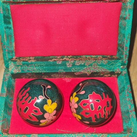 Säljer flera par Qi Gong-kulor (hälsokulor/stresskulor). Perfekta för avslappning, handträning eller som meditation/fidget.