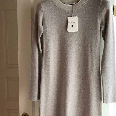 En mörkgrå klänning. Rak passform