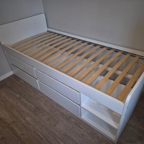 IKEA säng med utdragslådor under och utdragbar extrasäng. 90 x 200.
