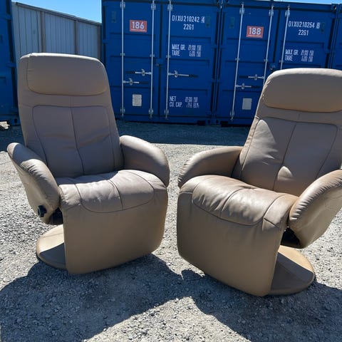 Säljer ett parti bekväma elektriska recliner-fåtöljer i blått skinn/konstskinn. Perfekta till hemmabio, kontor, väntrum eller projekt.