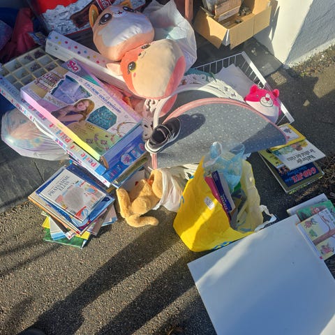 En hel påse med dinosaurier i olika storlek bortskänkes. Hämtas snarast
