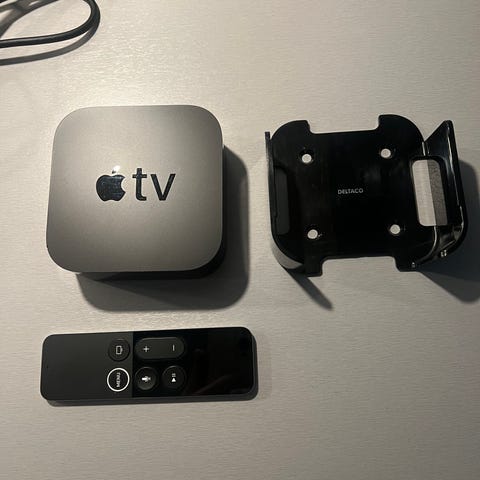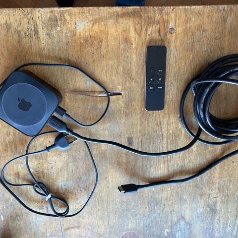 3:e generationen Apple TV (A1427). Med kablar och fjärrkontroll.