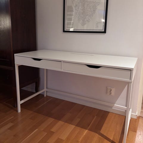 Vitt skrivbord 131x60 cm med två utdragbara lådor – bra skick