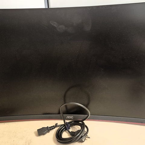 ASUS 32" böjd gaming skärm med vit fot. Har tunn ram och funkar bra som extern skärm till dator eller konsol.