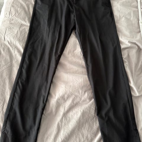 Säljer ett par svarta kostymbyxor från Hugo Boss i stilren och klassisk modell, fint skick utan hål eller större slitage. Perfekta till både jobb, fest eller vardag när du vill ha en clean och uppklädd stil utan krångel
