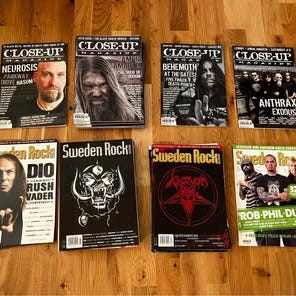Säljer ett skönt paket med fyra tidningar för den kulturintresserade. Perfekt för dig som gillar hårdrock, gitarrspel eller filmhistoria.