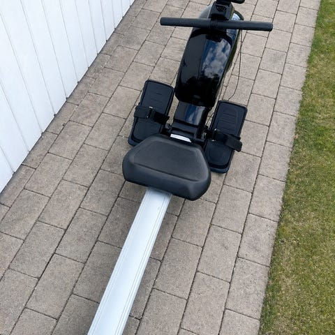Casall R300 roddmaskin med träningsdator som visar tid, distans, kalorier m.m. Justerbara fotstöd och bekvämt säte på skena som glider lätt fram och tillbaka.