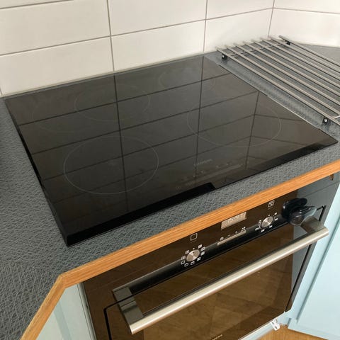 Siemens induktionshäll med slät svart glasyta. Passar inbyggnad ovanför ugn, enkel att hålla ren. 60cm bred. Ca 1 år gammal