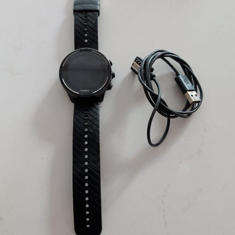 Suunto sportklocka i svart med rund urtavla. Levereras utan laddare då jag har tappat bort den.
