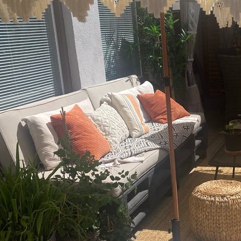 Köpt på Bauhaus för ca 900 + 500 kr. Har förvarats inomhus och är i gott skick. Fodralet har dragkedja och kan tas av för tvättning.