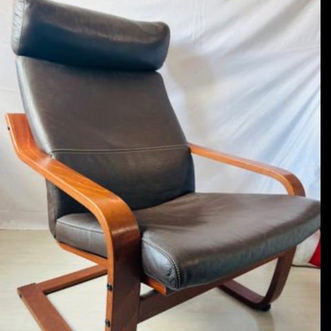 1. IKEA POÄNG fåtölj – Svart läder & körsbär. Sparsamt använd.