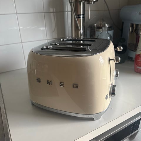Smeg brödrost med plats för 4 skivor och två separata reglage. Flera inställningar på framsidan för olika rostningslägen.
