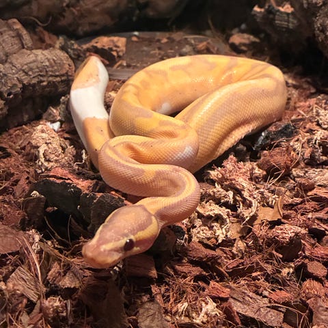 Kungspython hona knappt ett år. Äter och ömsar som den ska.
