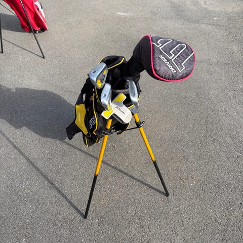 Säljer ett komplett junior golf sett (5,7,9) putter driver och sandwedge+ bag se bild 1-3, 9an har en lite skada men inget som påverkar ut spelet se bild 3. 1300kr