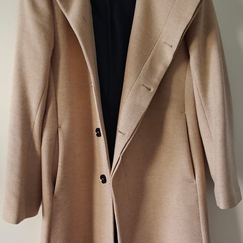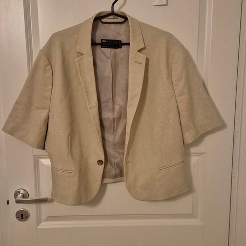 Beige skinnjacka i stl L. Dragkedja framtill, två fickor med dragkedja och quiltat foder på insidan.