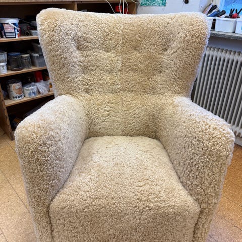 Original från Carl Hansen & Søn, med stämpel och serienummer. CH25 lanserades 1950 och räknas som en av Wegners mest ikoniska fåtöljer.