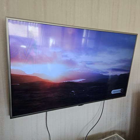 Sony smart LED-TV modell KDL-50W656A, 50 tum med silvrig ram. Har flera anslutningar på baksidan för t.ex. HDMI och USB. Medföljer upphängningsanordning som TV:n är upphängd med på bilderna, samt vanligt stativ om man vill ställa den på TV-bänk.
