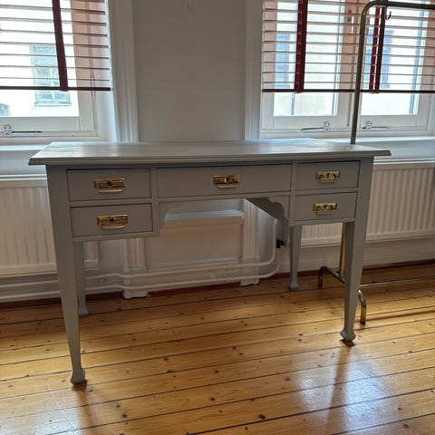 Vitt sminkbord/toalettbord m spegel och pall. Shabby chic.