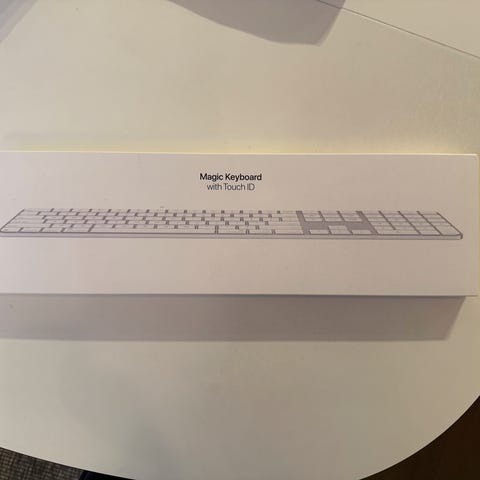 Apple Wireless Keyboard, trådlöst tangentbord i aluminium med vita tangenter. Svensk layout med funktionsknappar för volym, media och snabbkommandon.