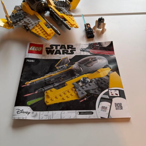 LEGO Star Wars Microfighters 75193 Millennium Falcon med figur från setet. Instruktionshäftet följer med och skeppet har flera små detaljer och kanoner upptill.