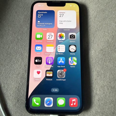 Apple iPhone 13 med 128 GB lagring i vit färg. Levereras i originalkartong enligt bilderna.