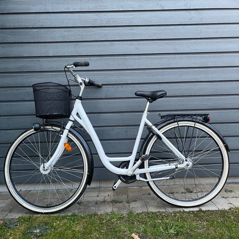 Dam cykel med barnstol. Behöver en tvätt och pumpa hjulen ej punka.