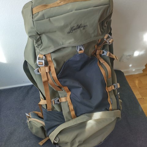 Storlek L. 2025 modellen. Använd vid 5 dagars tur men den va lite för liten för mig (volym mässigt)..