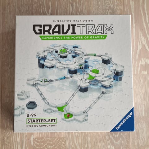 Ravensburger GraviTrax Starter-Set kulbana med många delar för att bygga egna banor. Innehåller bland annat hexagonplattor, skenor och instruktioner på svenska.