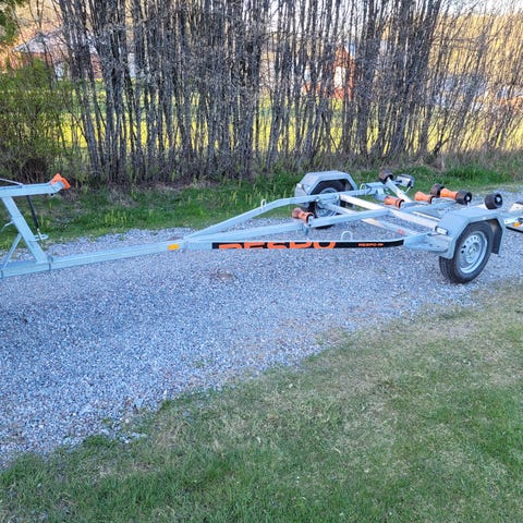 Mycket praktisk kärra där hela flaket tiltas och blir en påkörningsramp. Jag har använt den till att köra runt en mindre traktor mellan uppdrag på olika fastigheter.