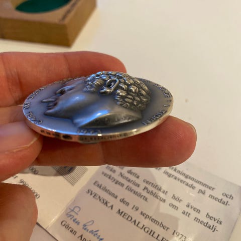 silver 999/73g Svenska Medaljgillet silvermedalj Prinsessan Christina 30 år 1975