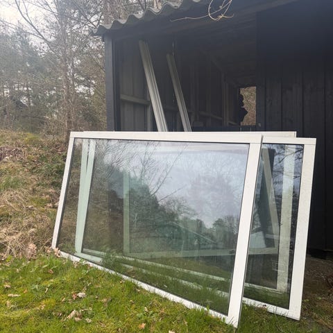 Glasdörr och ett stort fönster 9x21 med karm vit