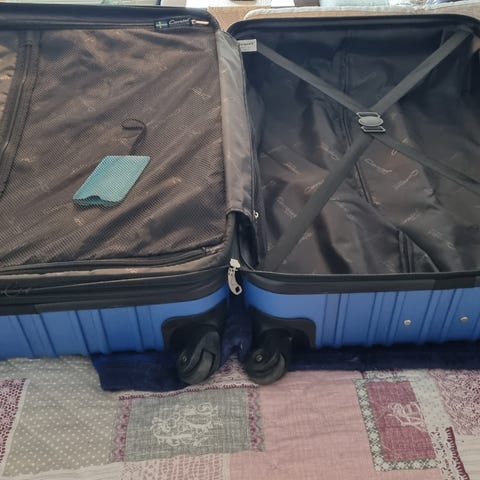 en resväska av modellen Travelers Club Chicago 20-tums hardside spinner. .