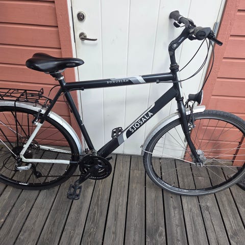En fin och väl omhändertagen, begagnad 28 tum hybridcykel av kvalitetsmärket Cyclepro Backroads. 3*8 växlar. Cykeln har stått oanvänd två år pga. mina operationer. Cykeln har klassisk ram, raka styren och pakethållare bak. Utrustad med skärmar och handbromsar fram och bak, en mindre skada på kedjeskyddet (utan påverkan).