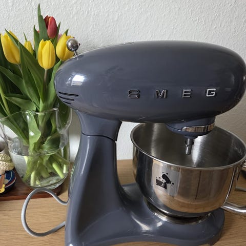 Smeg köksmaskin köpt för ca 2,5 år sedan. Använd mycket sparsamt. Säljer p.g.a. behov av en större köksmaskin. Behållaren rymmer 4,8 L.
