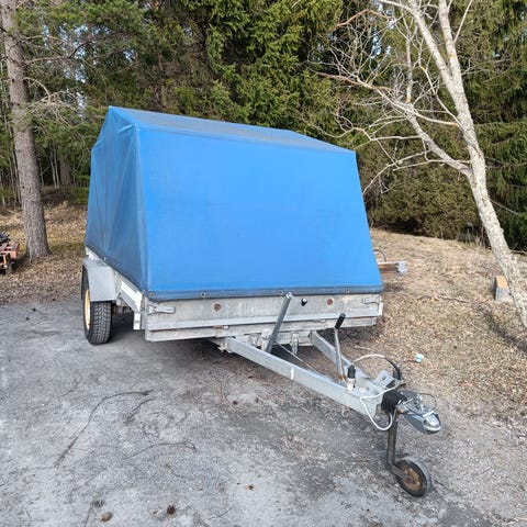Trane släpvagn 2003 obromsad. Hemmagjord kåpa med kapellväv.